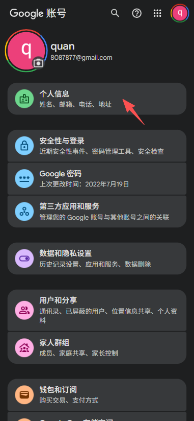 在左侧菜单中,点击 “个人信息” (Personal info) 。